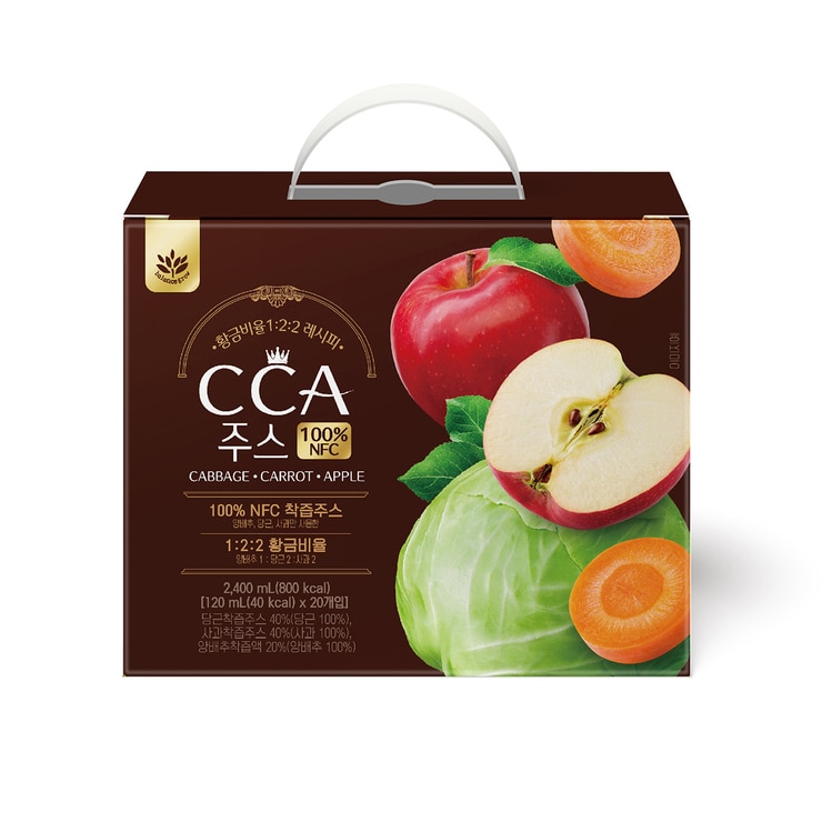 CCA 오리지널 레시피 <양배추 1 : 당근 2: 사과 2> 그대로 생채소 과일로만 만든, 물 한 방울 넣지 않은 100% NFC 착즙주스입니다.
