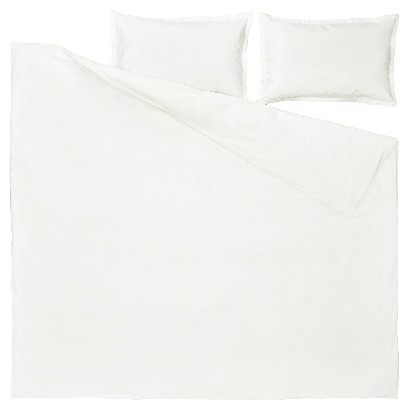 HAMPFLOCKEL duvet cover set in classic white serves as a sophisticated neutral on your bed. The crisp cotton percale weave feels nothing less than a luxury getaway.